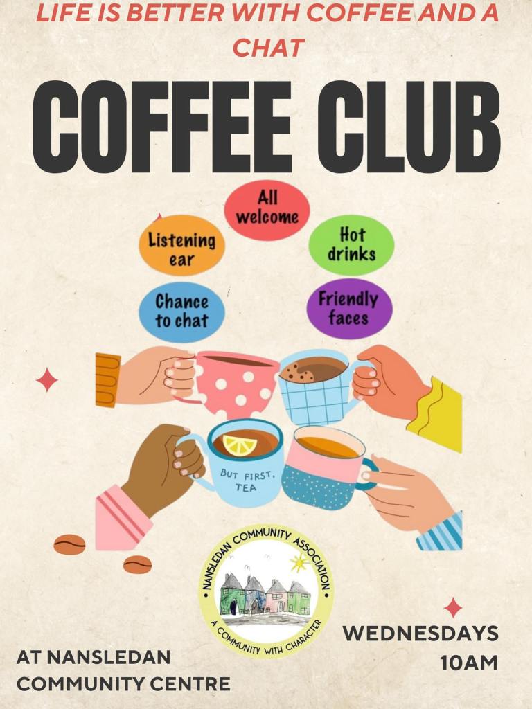 The coffee club meets every Wednesday at 10am. Each week we try a new craft. Feel free to drop in and make new friends. A minimal £2 charge will cover refreshments.
